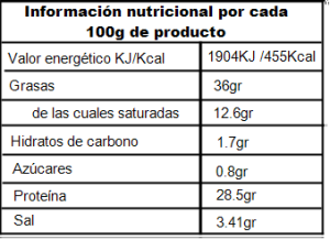 Magro y grasa de cerdo, sal marina, especias, dextrina, dextrosa, antioxidante (E-316) y conservantes (E-250 y E-252)